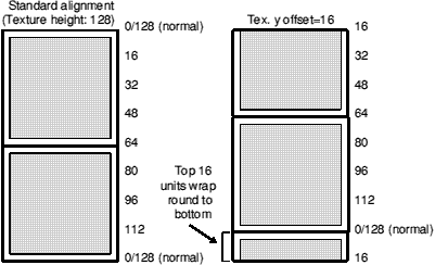 e.g. if you were trying to fit a height 128 texture into a space 96 units big, you would set the texture y offset to 128-96, or 32.