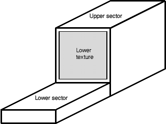 Yet another note: if your lower texture has another higher-than-normal sector below it, it will not be affected. (Top-down logic again.)