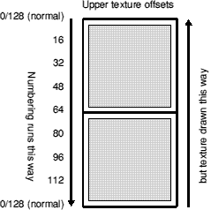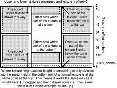 While upper textures are drawn from the bottom up, the texture y offset numbering still runs from top to bottom.