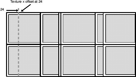 For texture x offsets greater than the width of the texture, subtract the texture width until you get a number smaller than the texture width.