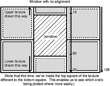 Now, what if the alignments on the normal textures next to our window were very slightly skewed? Say, if we'd just aligned them all the way down a staircase and they didn't quite come out even? What happens if the normal textures are offset by 8, and we set the texture y offset on the window to 8 as well?