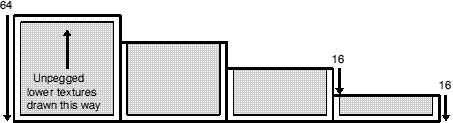 Normal textures are drawn from the top downwards. This means that the top of the texture is always aligned with the ceiling, like so: